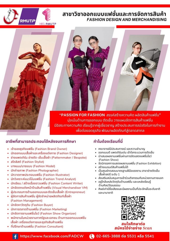 สาขาวิชาออกแบบแฟชั่นและการจัดการสินค้า คณะเทคโนโลยีคหกรรมศาสตร์…จัดทดสอบมาตรฐานฝีมือแรงงานแห่งชาติ สาขาช่างเย็บ ระดับ 1 ศูนย์ทดสอบมาตรฐานฝีมือแรงงาน คณะเทคโนโลยีคหกรรมศาสตร์ มหาวิทยาลัยเทคโนโลยีราชมงคลพระนคร ได้รับการรับรองโดยกรมพัฒนาฝีมือแรงงาน กระทรวงแรงงาน จัดทดสอบมาตรฐานฝีมือแรงงานแห่งชาติ สาขาช่างเย็บ ระดับ 1 แก่ประชาชนทั่วไป เปิดทดสอบทักษะความรู้ความสามารถด้านการเย็บตามเกณฑ์มาตรฐาน ผู้ผ่านการทดสอบทั้งภาคความรู้และภาคความสามารถจะได้รับการรับรองมาตรฐานจากกรมพัฒนาฝีมือแรงงาน กระทรวงแรงงาน คณะกรรมการทดสอบประกอบด้วย ผู้ช่วยศาสตราจารย์จุฑาทิพ…